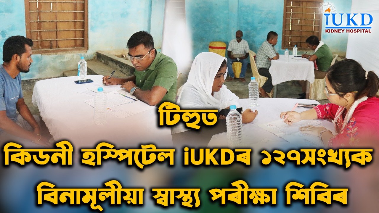 গুৱাহাটীৰ সোণাপুৰস্থিত কিডনী হস্পিটেল iUKD আৰু সদৌ অসম চলচ্ছিত্ৰ [বিত্ত আৰু উন্নয়ন] নিগমৰ অধ্যক্ষ তথা বিশিষ্ট সমাজসেৱক-গায়ক শ্ৰদ্ধাৰ সীমান্ত শেখৰ ডাঙৰীয়াৰ উদ্যোগত তথা ESKFৰ সহযোগত যোৱা ২৭ আগষ্ট, ২০২৫, বুধবাৰে টিহুৰ নিজ নমাটি বিদ্যাপীঠ সামূহিক প্ৰশালাত অনুষ্ঠিত হয় কিডনী তথা প্ৰস্ৰাৱজনিত সমস্যাৰ ১২৭সংখ্যক বিনামূলীয়া চিকিৎসা শিবিৰ৷ উক্ত চিকিৎসা শিবিৰটোত আমি উপস্থিত থাকি ১২গৰাকী ৰোগীক কিডনী তথা প্ৰস্ৰাৱজনিত সমস্যাৰ চিকিৎসা বিনামূলীয়াকৈ চিকিৎসা প্ৰদান কৰোঁ৷ শিবিৰৰ আৰম্ভণিতে এক চমু অনুষ্ঠানত উদ্যোক্তাৰ তৰফৰ পৰা আমাক গামোচাৰে সম্বৰ্ধনা জনায়৷ এই বিনামূলীয়া চিকিৎসা শিবিৰত কিডনী তথা প্ৰস্ৰাৱজনিত সমস্যাত ভোগা ৰোগীসকলক iUKDৰ ফালৰ পৰা চিকিৎসা প্ৰদান কৰা হয় আৰn তেওঁলোকৰ এই ৰোগৰ চিকিৎসাৰ ক্ষেত্ৰত বিধান দিয়াৰ লগতে বিনামূলীয়াকৈ ঔষধো বিতৰণ কৰা হয়৷ কিডনী হস্পিটেল iUKD-এ আমাৰ তত্ত্বাৱধানত চিকিৎসক তথা স্বাস্থ্যকৰ্মীৰ এটি সঁজাতী দলে অসম তথা উত্তৰ-পূৰ্বাঞ্চলৰ প্ৰত্যন্ত অঞ্চলকে ধৰি বিভিন্ন চহৰ-নগৰলৈ গৈ ৰাইজৰ মাজত কিডনী তথা প্ৰস্ৰাৱজনিত সমস্যাৰ বিৰুদ্ধে সজাগতাৰ সৃষ্টি কৰি অহাৰ লগতে এনে সমস্যাত ভোগা ৰোগীসকলক বিনামূলীয়াকৈ চিকিৎসা সেৱা প্ৰদান কৰি আহিছোঁ৷