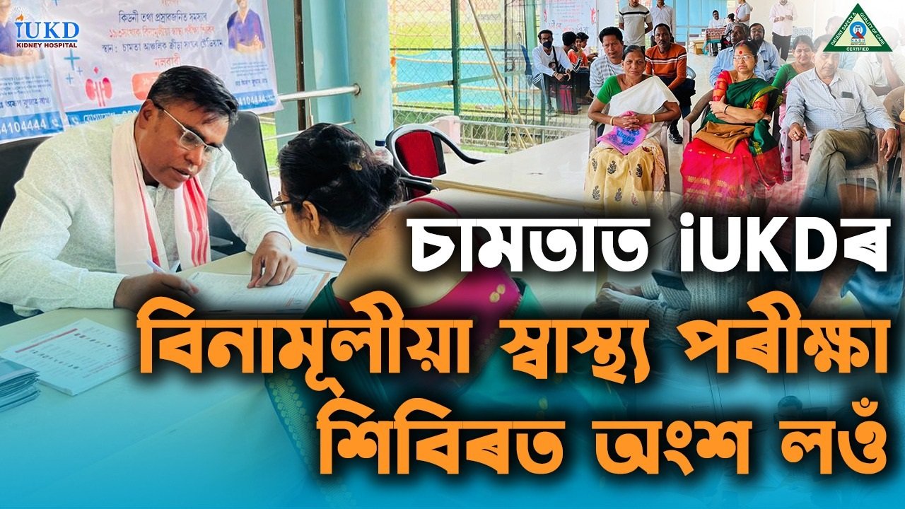 গুৱাহাটীৰ সোণাপুৰস্থিত কিডনী হস্পিটেল iUKD আৰু চামতা আঞ্চলিক ক্ৰীড়া সংঘৰ উদ্যোগত তথা ESKFৰ সহযোগত যোৱা ১৮ মাৰ্চ, ২০২৬, বুধবাৰে চামতা আঞ্চলিক ক্ৰীড়া সংঘৰ ষ্টেডিয়ামত কিডনী তথা প্ৰস্ৰাৱজনিত সমস্যাৰ ১৯৩সংখ্যক বিনামূলীয়া চিকিৎসা শিবিৰত আমি অংশগ্ৰহণ কৰোঁ৷ উক্ত চিকিৎসা শিবিৰটোত আমি উপস্থিত থাকি ৩০গৰাকী কিডনী তথা প্ৰস্ৰাৱজনিত সমস্যাৰ চিকিৎসা বিনামূলীয়াকৈ প্ৰদান কৰোঁ৷ শিবিৰৰ আৰম্ভণিতে শিবিৰত অংশগ্ৰহণ কৰা ৰোগীসকলক কিডনী তথা প্ৰস্ৰাৱজনিত ৰোগ সম্পৰ্কে তথা ইয়াৰ সজাগতা তথা সাৱধানতাৰ বিষয়ে বিশদভাৱে বিৱৰি কোৱাৰ লগতে এই ৰোগৰ বিস্তৃতি ৰোধৰ ক্ষেত্ৰত আমি কিধৰণৰ ব্যৱস্থা গ্ৰহণ কৰিব লাগে, সেই সম্পৰ্কে কিছু আভাস দাঙি ধৰোঁ৷ এইকণ সুযোগ তথা সুবিধা কৰি দিয়াৰ বাবে আমি উদ্যোক্তাসকলৰ ওচৰত কৃতাৰ্থ হওঁ আৰু ধন্যবাদ জ্ঞাপন কৰে৷ ৰাইজৰ আশীৰ্বাদ শিৰত লৈ অনাগত দিনতো এইদৰে বিনামূলীয়া চিকিৎসা শিবিৰ অনুষ্ঠিত কৰি কিডনী সম্পৰ্কীয় ৰোগৰ বিনামূলীয়া চিকিৎসা প্ৰদানৰ ক্ষেত্ৰত আমি প্ৰতিশ্ৰুতিবদ্ধ৷ সেয়ে এইধৰণৰ স্বাস্থ্য পৰীক্ষা শিবিৰ অনুষ্ঠিত কৰিব বিচাৰিলে কিডনী হস্পিটেল iUKDৰ সৈতে যোগাযোগ কৰিব পাৰে৷
